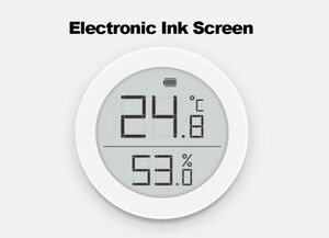 Cleargrass (Qingping): hygro thermometer, round body, e-ink display.